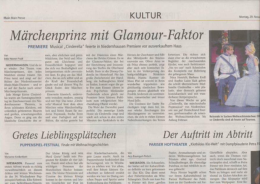 »Cinderella erobert die Herzen. Das Popmusical begeistert die kleinen und großen Zuschauer.«